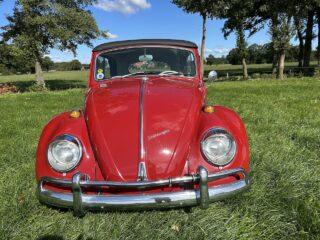 Prachtig gerestaureerde Kever Cabriolet uit 1965 in de kleur Robin Red, de auto is body off gerestaureerd, heeft nieuwe remmen voor en achter, motor 1600cc 50pk, stoelen opnieuw bekleed, alles is prachtig gerestaureerd tijdens de Kever restauratie Koetswerk in kleur gespoten inclusief de binnenkant van wielkasten zodat je snel kunt zien hoe goed deze Kever Cabriolet is gerestaureerd met originele white wall banden, zelfs het reservewiel.
