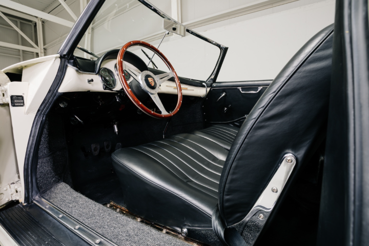 The 356 Roadster was conceived as the successor of the Speedster. The main differences with the more common, less rare, Cabriolet 356 B variant were the removable windshield frame, the Speedster-like minimalist dashboard, the lighter and less bulky soft-top frame, the Roadster offered a purer, sport-oriented character than the contemporary Cabriolet. Produced between 1959 and 1961 and with a total run of 2.653 examples, the Roadster is revered as one of the most interesting 356 models, specially in its “Super 90” variant.