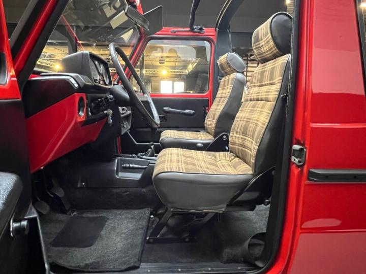 Inside, the car features one of the most desirable and rare upholstery options for a W460: the original Schottenkaro tartan fabric. Most early G-Wagons were delivered with simple black interiors, so finding a Cabriolet with this original tartan trim and in such authentic condition is extremely uncommon. It gives the car a warm and period-correct charm.