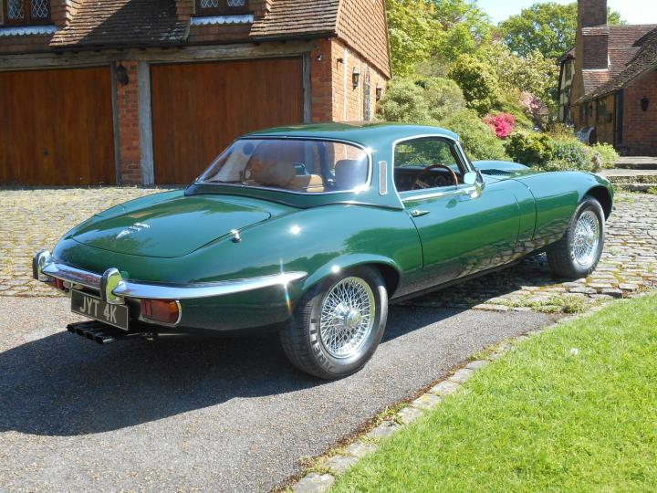 This classic 1972 Jaguar E-Type SERIES 3 V12 Automatic is Finished in the Rare Colour Scheme ,from New, of BRITISH RACING GREEN with contrasting TAN LEATHER TRIM with a Black Soft Top and COMES WITH A FACTORY DETATCHABLE HARD TOP finished in the matching British Racing Green which was also supplied when the car was new, Along with CHROME WIRE WHEELS. The Car has ONLY had 4 PREVIOUS OWNERS from NEW , the LAST OWNER for 9 YEARS ( Since 2015 till 2024) and the Owner prior to that OWNED the CAR from 1980 UNTIL 2015 (35 Years) . When the Last owner purchased the car in 2015 he had the car inspected by Miles Classic of Huddersfield which we have the report that states what a good sound original car it was but the paint had faded slightly due it being 43 years old at that time. So having purchased it he asked Miles Classic to set about giving the car BARE METAL RESPAY and to completely Recommission the car with many Upgrades which COST in EXCESS of £40,000. The CAR COMES with PAPERWORK & PHOTOGRAPHIC HISTORY DATING BACK to 1974 with ALL OLD MOTs and Copies of OLD LOG BOOKS and a letter from the OWNER in 1980 That confirms the Ownership and mileage at that time .The work carried out by the last owner is to extensive to list here so please ring for the full outline of the work and upgrades carried out. This is a very nice and well sorted example and an absolute pleasure to drive.