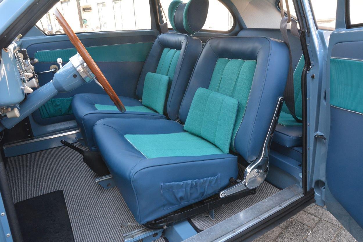2-punts veiligheidsgordels (zeer uniek voor die tijd).